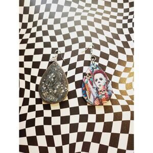 Horor themed colorful unique Large style dangle earrings. Halloween Michael Myers inspired