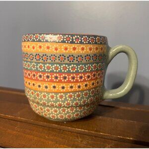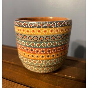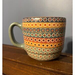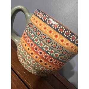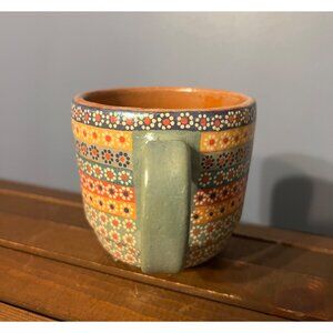 Handmade Unmarked Hand Painted Floral Pattern Lustre Mexican Style Clay Mug Boho