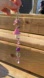 Add a whimsical touch to your bag with this pink and purple beaded charm accessory. Perfect for adding a pop of color and style.