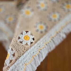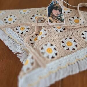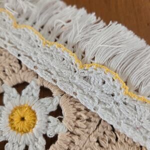 Handmade, Upcycled Crochet Daisy Vintage lace fringe detail Hippie chic Bandana