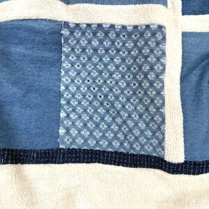 Handmade Upcycled Denim Patchwork Throw Blanket Quilt With Sherpa Trim