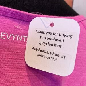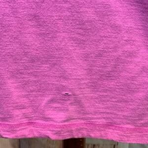 This upcycled tee is a ladies large and is 56% cotton, 40% rayon, 4% spandex. chest: 18" across, length: 24". There is a small hole on the front of this one (see photo).