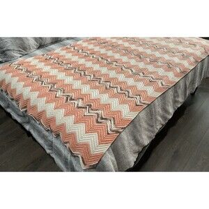 Handmade VINTAGE Afghan Crochet Blanket 81"x47" Chevron Zig Zag Granny Cottage