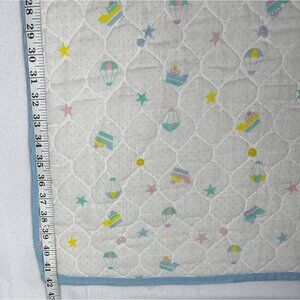 Handmade VTG Baby Blanket Blue Trim Stars and Boats Yellow Back Quilt