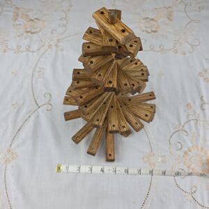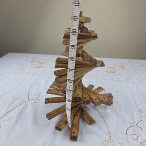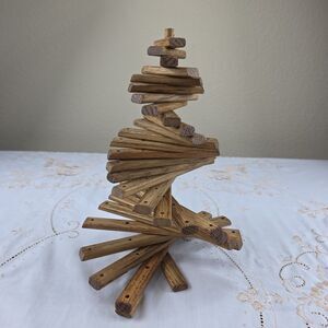 This Handmade VTG Wooden Tabletop Christmas Tree is a charming and rustic addition to your holiday decor. Measuring 9.5" x 11", this unlit tree is perfect for showcasing on a tabletop. Made of wood with a brown varnished color, this tree exudes a vintage charm and is ideal for creating a cozy Christmas atmosphere. Handcrafted in the United States, this unique Christmas tree brings a touch of nostalgia and traditional holiday cheer to your home.