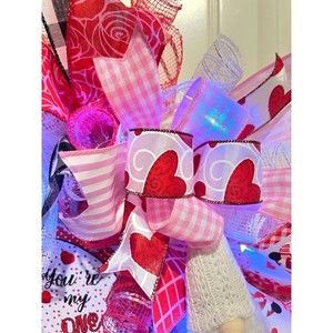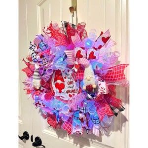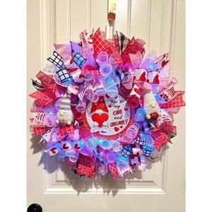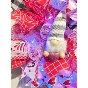 Handmade Valentine’s Gnome Hearts Ribbon Prelit Wreath 22 ins LED W13