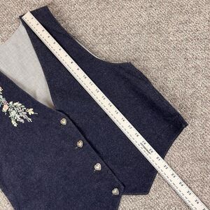 Handmade Vest Womens Medium Chambray Ribbon Embroidered Floral Cottage Retro 90s