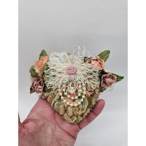 Handmade Victorian Lace & Flowers Christmas Tree Ornament Lot Of 4 ,"Peace",Boho