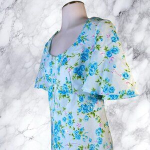 Handmade Vintage Baby Blue Rose Print Floral Prairie Empire Waist Dress