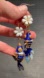 Handmade and one of a kind! Blue and white fish earrings with floral beads at the top. I believe the fish and beads are enamel. The fish bodies are flexible and move! :) I made these earrings in the early 2000's. Beads and materials are vintage. Very lightweight.