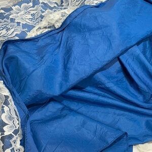 Elegant blue and white floral lace dress with puff sleeves. Perfect for theater play or Halloween costume. Some discoloring in armpits on the satin lining. Some random holes in lace covering. It’s constructed very well, zipper in back. Listings as a M based on measurements.