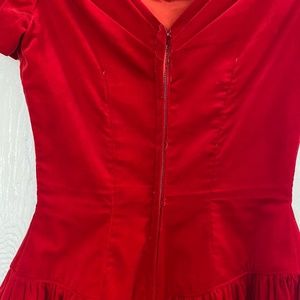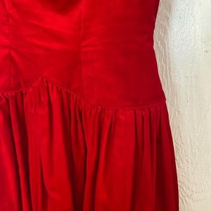 Vintage 50’s style dress. Gorgeous velvet feel fabric- no fabric content listed as it appears to be handmade. Beautiful seams and drape to the fabric. Measurements are in the the pictures. Close to an xs or xxs in the waist and the skirt is full. Bust would fit a 34 bust or below