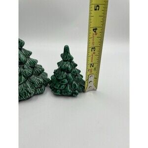 Handmade Vintage Green Ceramic Mini Christmas Tree Set of 2 Signed 1980’s