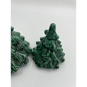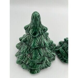 Handmade Vintage Green Ceramic Mini Christmas Tree Set of 2 Signed 1980’s