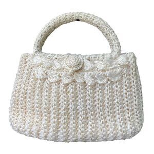 Handmade Vintage Hong Kong raffia handbag winter white .
