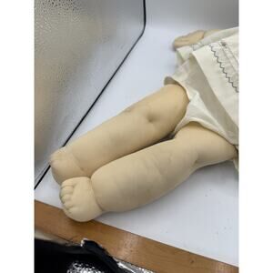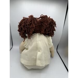 This 21” handmade vintage soft cloth adoption doll features a painted face, red yarn hair, and hand embroidered details. The rag and cloth doll is of Caucasian ethnicity with brown eyes and a light complexion. This unique girl doll is perfect for all occasions and would make a charming addition to any doll collection.