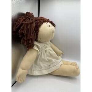 Handmade Vintage Soft Cloth Adoption Doll 21” – Painted Face, Red Yarn Hair