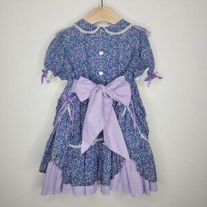 Handmade Vintage Style Prairie Dress Purple Blue Floral Baby Girls 2T #3337