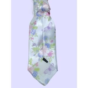 Handmade Vintage Tie Necklace Pastel Floral RMN Pearl Beads Upcycled Butterfly