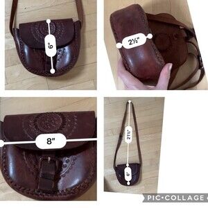 Handmade Vintage Tooled And Woven Leather Crossbody Bag in Deep Rich Brown