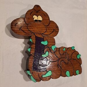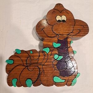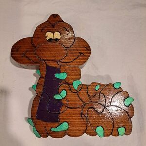 This is an adorable handmade vintage wooden caterpillar children's block puzzle!