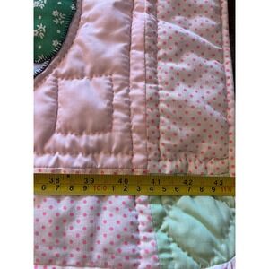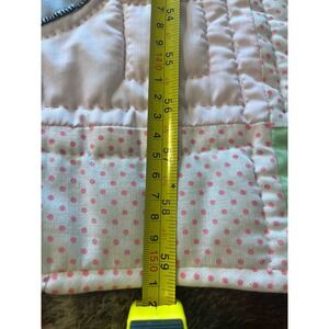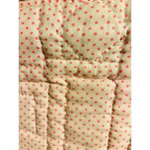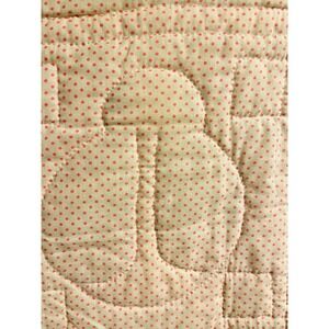 Adorable vintage Ladybug 🐞 patchwork quilt has cream and pink polka dots in the back .