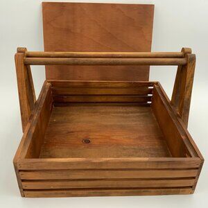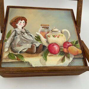 Handmade Vtg Folk Art Wood Sewing Box Carrying Case Hand Painted Cover