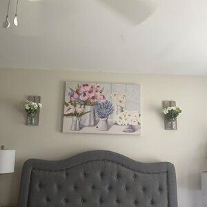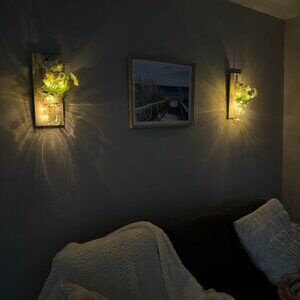 The beautifully crafted look of the Mason Jar Wall Sconce Wall Decor with bright LED lights adds a touch of warm and chic color to your décor, bringing more holiday cheer to you and your family. At night, surround yourself with stars and chirping insects in a rustic home decor house. Enjoy the soothing lights, graceful white peonies and eucalyptus leaves, simple and stylish, with a strong European flavor.