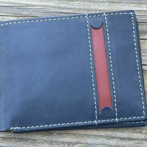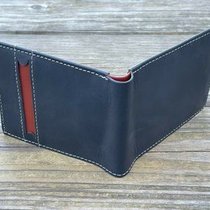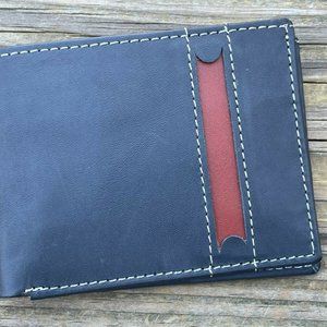 Handmade Wallet Genuine Leather Card Holder Blue Bi Fold Purse Wallet