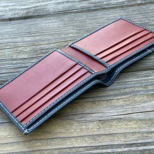 Handmade Wallet Genuine Leather Card Holder BlueBrown Bi Fold Purse Wallet