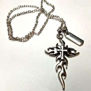 Handmade Warrior Cross Necklace on 24" Stainless Steel Chain