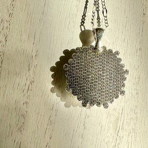 Handmade by me. Pendant comes with a 22 inch alloy chain and two additional cord necklaces for a fun versatile look Green and purple.