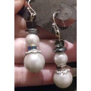 Tis the season snowmen Earrings handmade with white glass pearl beads and some colored Rhinestone for scarf.