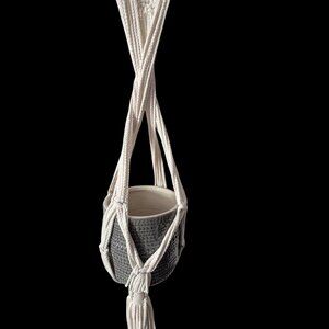 Handmade White Macramé Plant Hanger With Gray Ceramic Pot Boho Hippie Fairy