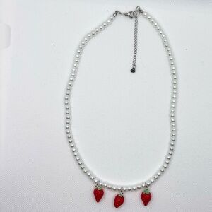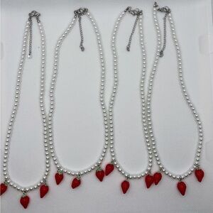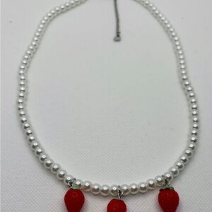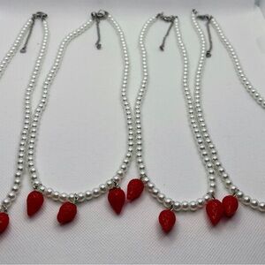 Handmade White and Red Minimalist Necklace with strawberries Pendants