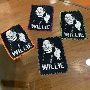 Handmade Willie Nelson canvas patch iron on stitched charcoal or black