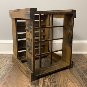 Beautifully handmade wine rack holds 12 standard sized wine bottles.
