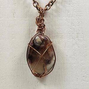 Handmade Wire Wrapped Agate Cabochon Necklace Pendant