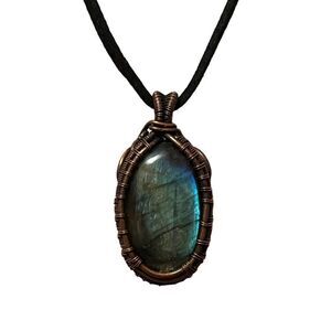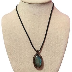 Handmade Wire Wrapped Labradorite Cord Necklace