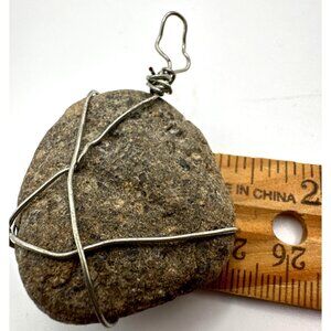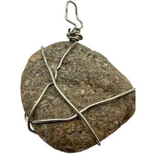 Natural stone pendant wrapped in silver-tone wire, ideal for adding a rustic touch to any outfit.