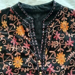 Description: Beautiful handmade women’s boho dress with intricate floral embroidery, beads, and tassels. Crafted from lightweight cotton in Thailand with artisan care. This unbranded piece has no size tag, but fits like a medium — please see detailed measurements below for accuracy. Perfect for summer, festivals, or casual wear as a dress or layered tunic. Unique, one-of-a-kind, and pre-owned in excellent condition.