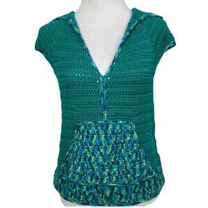 Handmade Women's New Green Crochet Hooded Cap Sleeve Knit Sweater S/C35
