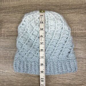 Handmade women's knit beanie - Ombré light blue color, braided pattern, extremely soft, warm, cozy, and fits most Adult Medium - Large sizes. This was handmade in San Jose California by a artist who has a passion and talent in creating quality beanies, sweaters, scarfs and dog sweaters. Care machine wash cold line dry. Material Hobbii 70% Polyamide, 20% Acrylic, 10% Virgin Wool. Condition is new never worn. Please preview measurements to ensure fit.