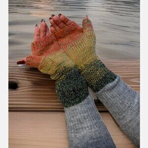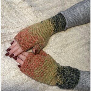 Handmade Women's Wool Blend Watermelon Multi Knit Fingerless Soft Mittens Gloves