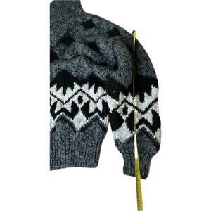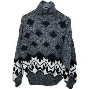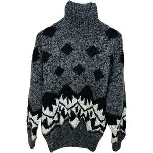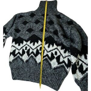 Handmade Womens Wool Turtleneck Sweater Nordic Geometric Gray Fair Isle Chunky