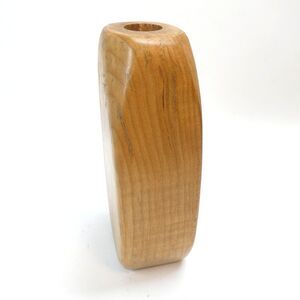 Beautiful handmade wooden candleholder or vase. It is about 8 inches tall. The hole is just under 1 inch across, and is several inches deep. Signed on underside with a signature and M.W.