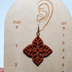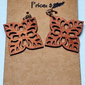 Handmade Wooden Dangle Floral Earrings Hook Unsigned 2" New