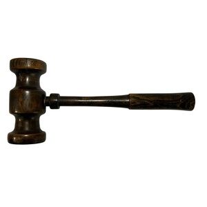 This beautifully handmade wooden gavel brings a touch of rustic charm and authority to any setting. Crafted from solid dark wood, it features natural grain patterns and a rich aged patina that make it ideal for display or functional use in meetings, court reenactments, or auctions.