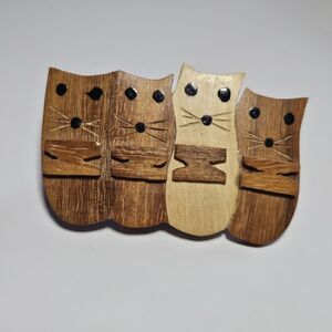 Handmade Wooden Kitty Cat Animal Hair Clip Barrette