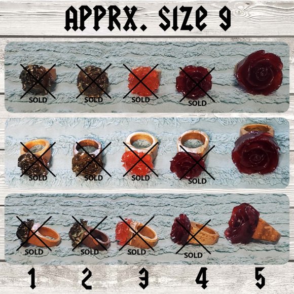 Choose one or all of these hand-crafted wooden rings that will catch everyone's eye, amazing conversation piece, easy way to make any outfit even more hip. Carefully carved from hardwood with smooth sanded & light polyurethane finish! Priced per single ring, please note #1-5 in comment once purchased to ensure you receive correct ring.
